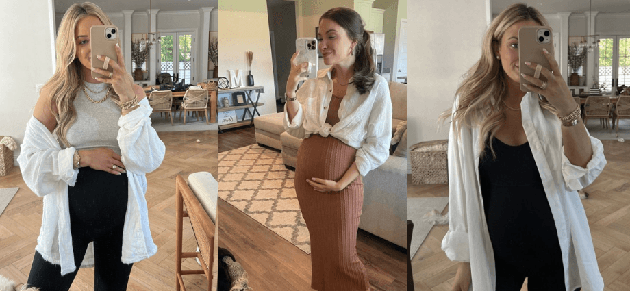 - Opt for oversized or loose-fitting clothes: These can work for the entire pregnancy and beyond.