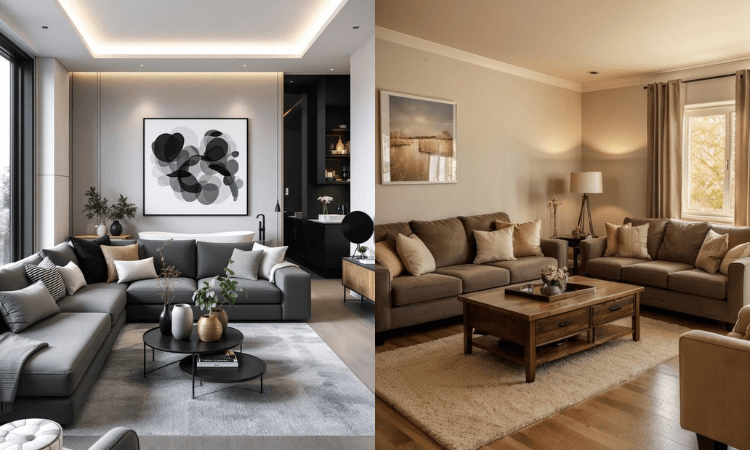 Example: A white wall paired with a light gray sofa creates a seamless, expansive effect.