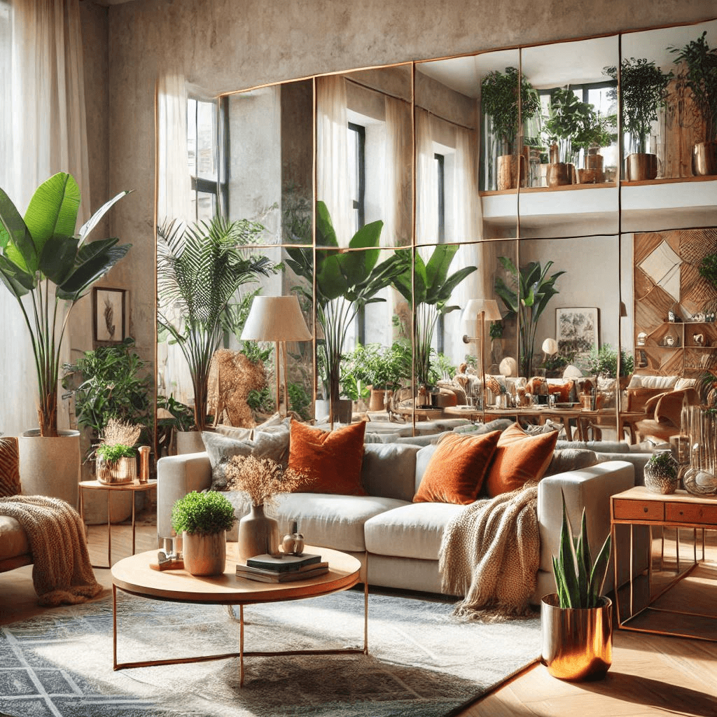 Placing mirrors on walls can make a room feel larger by reflecting the surrounding space, making it appear more open. Large mirrors, in particular, are excellent for opening up tight spaces.