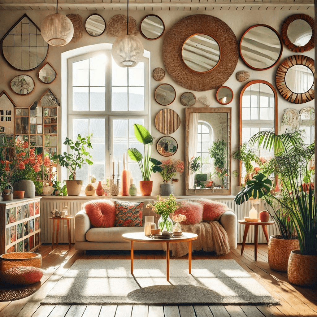 Mirrors come in various shapes and sizes, each creating a different effect in a room. Round mirrors create a soft, welcoming feel, while square or rectangular mirrors add a sleek, modern touch. Irregular or abstract-shaped mirrors work well in more artistic spaces.