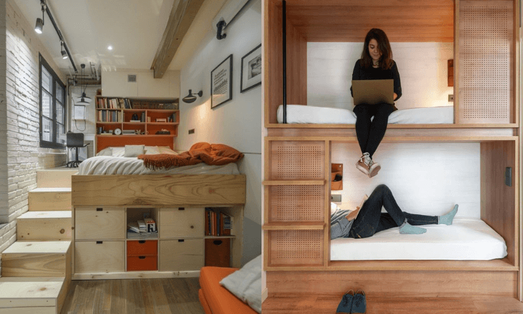 Storage beds, with built-in drawers under the mattress, are an excellent space-saving solution. You can use these drawers to store bedding, clothes, or shoes, keeping them out of sight and maintaining a tidy room. Storage beds are especially helpful for smaller rooms, where floor space is limited.
